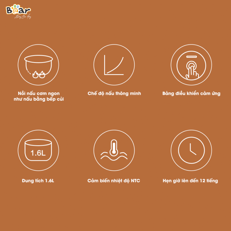 – Chức năng giữ ấm: Sau khi nấu xong, nồi cơm điện Bear 1.6L tự động chuyển sang chế độ giữ ấm, giúp thức ăn luôn ấm nóng và bảo toàn dinh dưỡng.